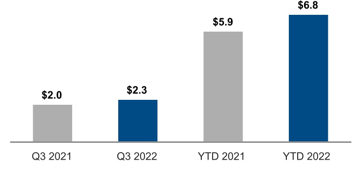 | Revenue down $3.9B or 20% from Q3 2021 | | Gross margin down 13.4 ppts from Q3 2021 | | Gross margin down 12.4 ppts from Q3 2021 | | Diluted EPS down $1.42 or 85% from Q3 2021 | | Diluted EPS down $0.86 or 59% from Q3 2021 | | Operating cash flow down $16.3B or 68% from YTD 2021 | | Adjusted free cash flow down $19.7B or 157% from YTD 2021 |