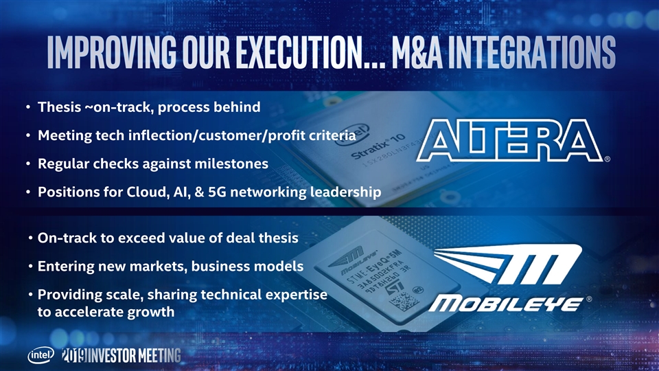 • Thesis ~on-track, process behind • Meeting tech inflection/customer/profit criteria • Regular checks against milestones • Positions for Cloud, AI, & 5G networking leadership • On-track to exceed value of deal thesis • Entering new markets, business models • Providing scale, sharing technical expertise to accelerate growth• Thesis ~on-track, process behind • Meeting tech inflection/customer/profit criteria • Regular checks against milestones • Positions for Cloud, AI, & 5G networking leadership • On-track to exceed value of deal thesis • Entering new markets, business models • Providing scale, sharing technical expertise to accelerate growth
