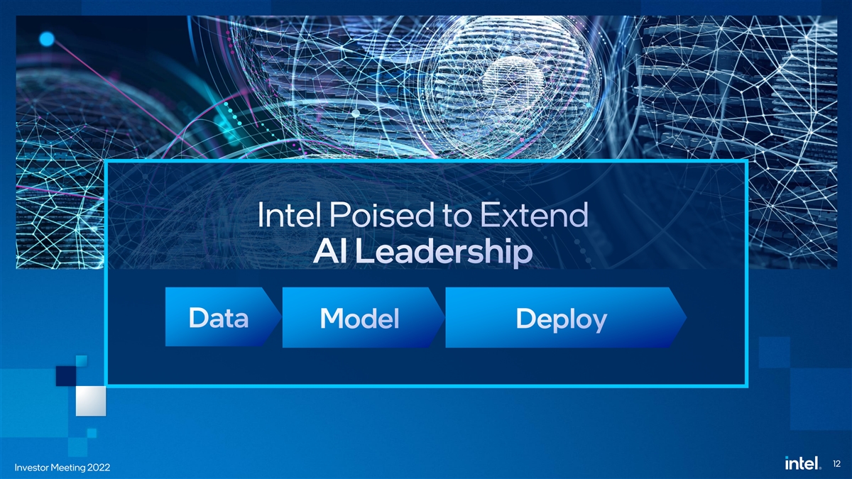 64% 60% Spanning Edge to Cloud and Customers Report Customers Report Covering All Major Markets Higher Application Performance* Faster Deployment Time* On Average On Average “Intel Select Solutions are like an ‘easy button’ that “Our VM density has increased roughly 20% to 35% can help customers solve business problems faster.” by using Intel Xeon Scalable processors optimized for virtualization and cryptography.” Bob Olwig, EVP, Corporate Business Development World Wide Technology Ian McClarty, President, phoenixNAP *Source: IDC Business Value White Paper, sponsored by Intel, The Business Value of Intel-Based Workload Optimized Solutions 11 doc #US48359721, November 2021, Results may vary Investor Meeting 2022