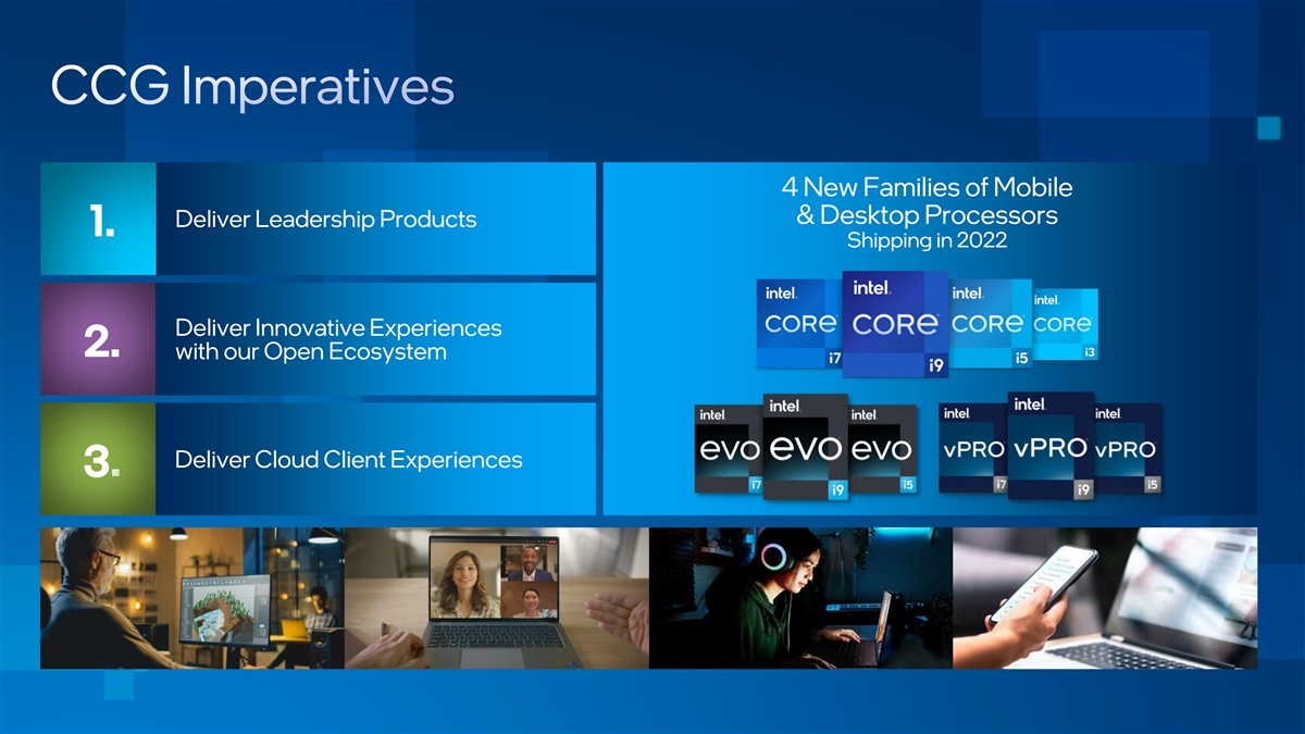 4 New Families of Mobile & Desktop Processors Deliver Leadership Products 1. Shipping in 2022 Deliver Innovative Experiences 2. with our Open Ecosystem Deliver Cloud Client Experiences 3