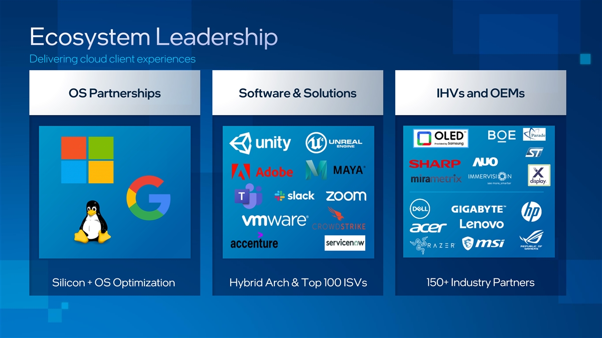 Delivering cloud client experiences OS Partnerships Software & Solutions IHVs and OEMs 150+ Industry Partners Silicon + OS Optimization Hybrid Arch & Top 100 ISVs