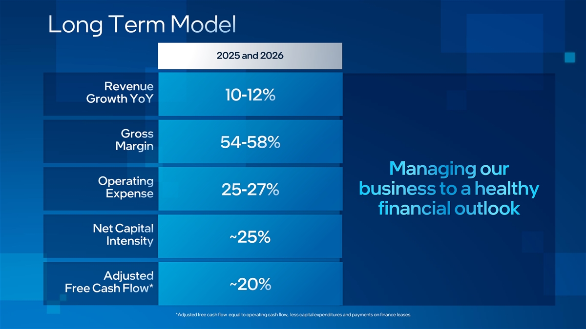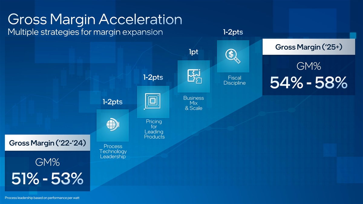 Gross Margin (‘25+) GM% Fiscal Discipline Business Mix & Scale Pricing for Leading Products Gross Margin (’22-’24) Process Technology Leadership GM% Process leadership based on performance per watt
