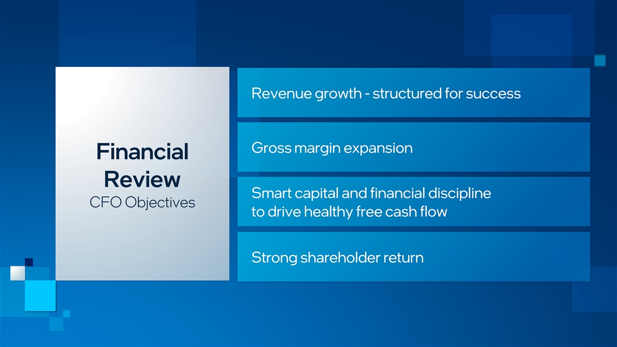 Revenue growth - structured for success Gross margin expansion Financial Review Smart capital and financial discipline CFO Objectives to drive healthy free cash flow Strong shareholder return